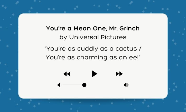 You’re as cuddly as a cactus / You’re as charming as an eel / Mr. Grinch, you’re a bad banana / With a greasy black peel