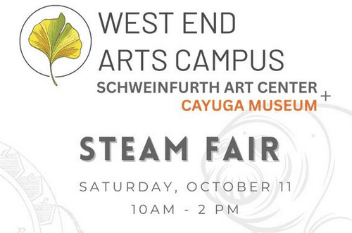 The STEAM Fair will take place from 10 am until to 2 pm and is free and open to the public, with Fall treats available for purchase at the New Hope Mills booth. Information tables will be stationed near the entry ways of the Campus for details, exhibitor maps, and to purchase tickets for a West End Arts Campus raffle basket of items from the Cayuga Museum and Schweinfurth gift shops.