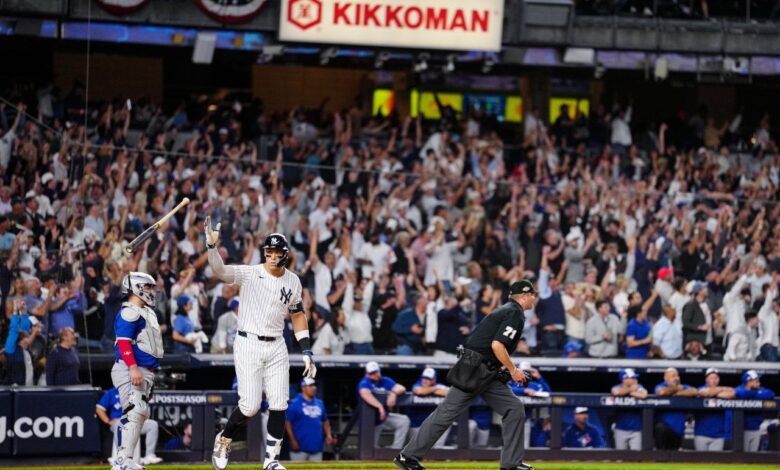 How’d that work out? Judge is the best hitter in the world and fisted a 100-mph fastball a good three baseballs inside the plate 400 feet to deep left, ringing it off the top of the foul pole last night, to tie Game 3 in the fourth inning 6-6. That sent 47,399 Yankee Stadium fans into a lather, neutering any confidence advantage the Jays had built, mostly off a Vlad Guerrero Jr. first inning home run, and a 6-1 lead in a potentially series-clinching game, changing the course of the game and the series.