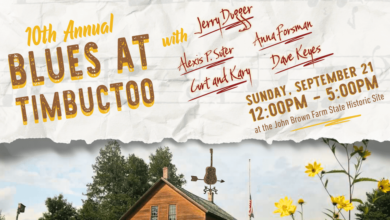 John Brown Lives! (JBL!) will host their tenth annual Blues at Timbuctoo at the John Brown Farm State Historic Site…