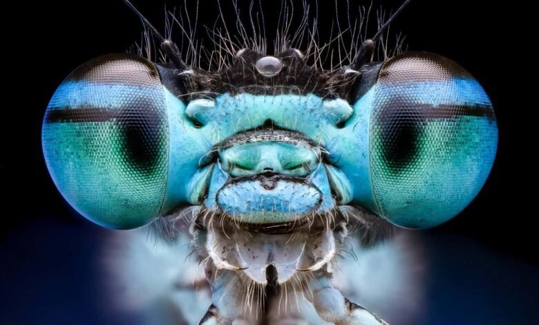The picture of the damselfly – exact species unknown – is one of Salb’s favourites because it features the insect’s symmetrical pseudopupils: the dark ovals that appear on the compound eyes, which are made up of many lenses.