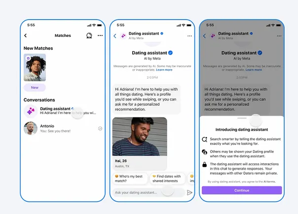 First off, Meta’s rolling out a new dating assistant, which will help you find more relevant matches in the app.