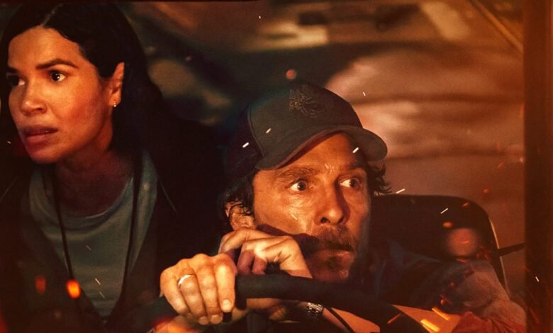 Soon he has a bus full of nippers and America Ferrara’s cool-headed teacher, Mary Ludwig in tow, but with the fire encroaching on all sides, the options are limited when it comes to escape. While Greengrass is interested in depicting how authorities respond to such an unfathomable incident, The Lost Bus is also calibrated as an old school disaster movie in the vein of The Towering Inferno or The Poseidon Adventure. The oppressive sound design and slick effects do add to the experiential mode, and McConaughey and Ferrara make for an appealing odd-couple pairing.