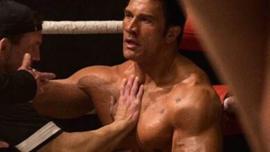 Even the decision to shoot all the UFC fights in a more traditional television event style (distant angles, quick cuts, cameras buzzing around like flies) rather than the evocative and intimate close-ups that have defined masterworks like Raging Bull and even The Wrestler give The Smashing Machine its own signature. The handheld camerawork of previous Safdie films returns, with The Curse cinematographer Maceo Bishop (who also worked in the Uncut Gems camera department) stepping up to the plate, fashioning something that feels chaotic and thrilling but never out of control.