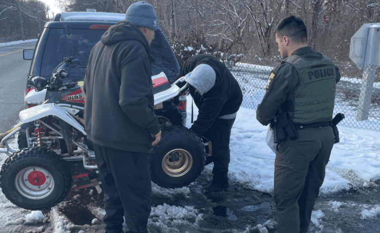 On February 9th, ECOs Dickson and Seabury patrolled areas surrounding Bethpage State Park on the border of Nassau and Suffolk Counties on Long Island to help prevent unlawful All-Terrain Vehicle (ATV) users on biking and running trails.